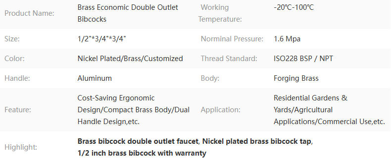A Brass Economic Double Outlet Bibcock is a compact, cost-effective bibcock designed with two separate outlets. Its core structure is primarily made from forging brass for the main components (body, bonnet, hose connector), ensuring durability and corrosion resistance.