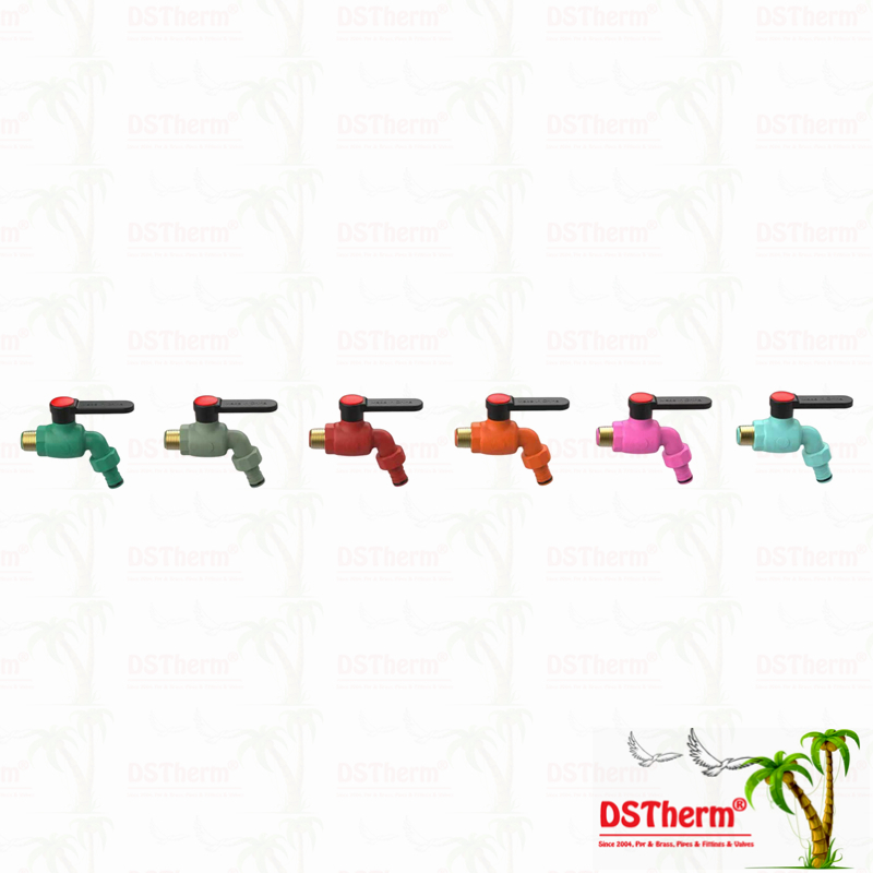 The PPR Bibcock is a terminal water outlet valve designed for PPR piping systems. It features a PPR body for corrosion-resistant, leak-free thermal fusion connections and incorporates brass components (CW617N) for the faucet cartridge and male thread, ensuring reliable operation and durable fittings.