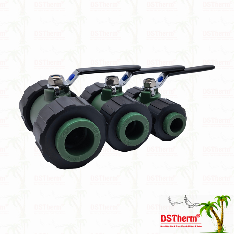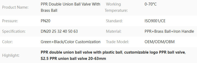 PPR Double Union Ball Valve With Brass Ball Iron Handle