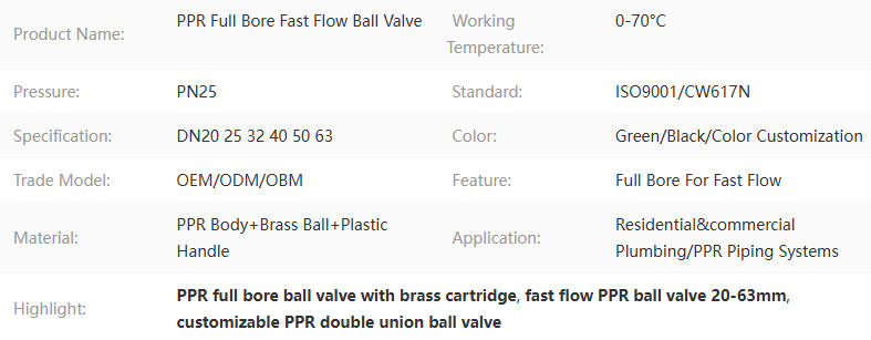 | PPR Full Bore Fast Flow Ball Valve | Specification |